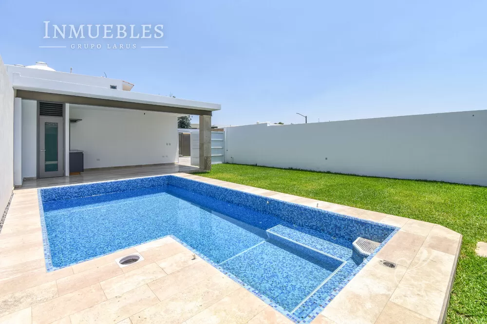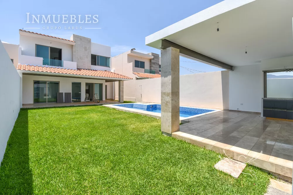El exterior es ideal para reuniones y momentos de relajación: amplio jardín, alberca privada, palapa con barra de granito y medio baño, cisterna de 10 mil litros y estacionamiento para 2 o 3 autos. Todo con acceso por portón privado 🌿🏊🏼♀️.