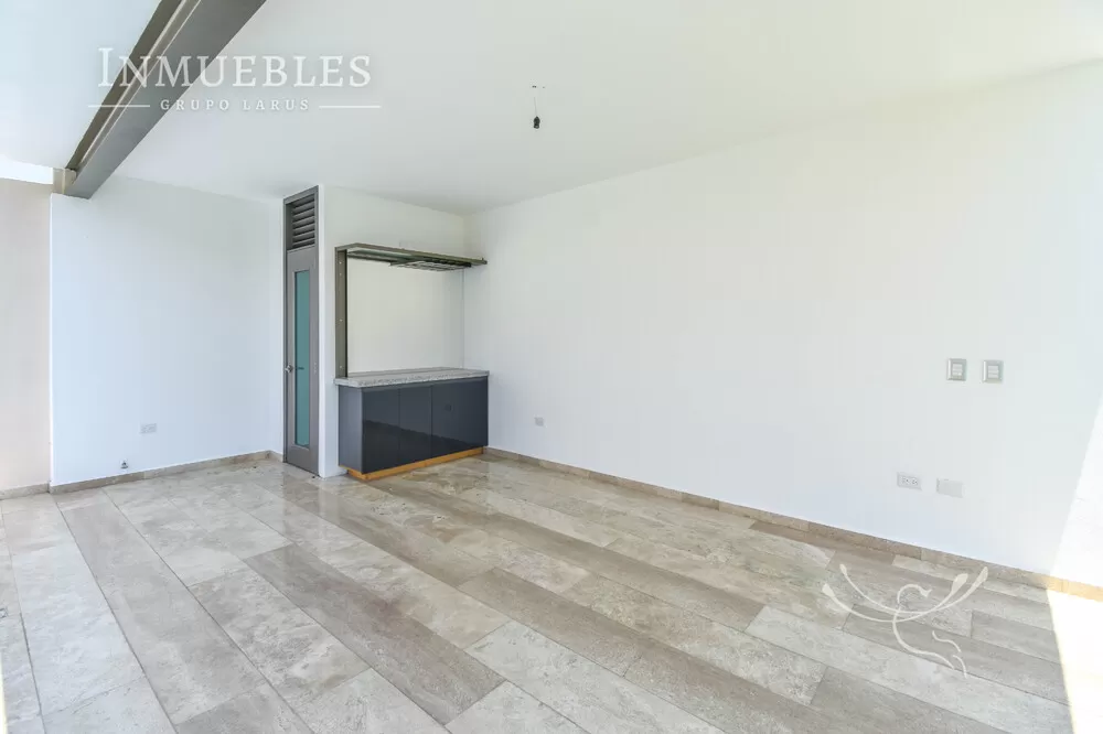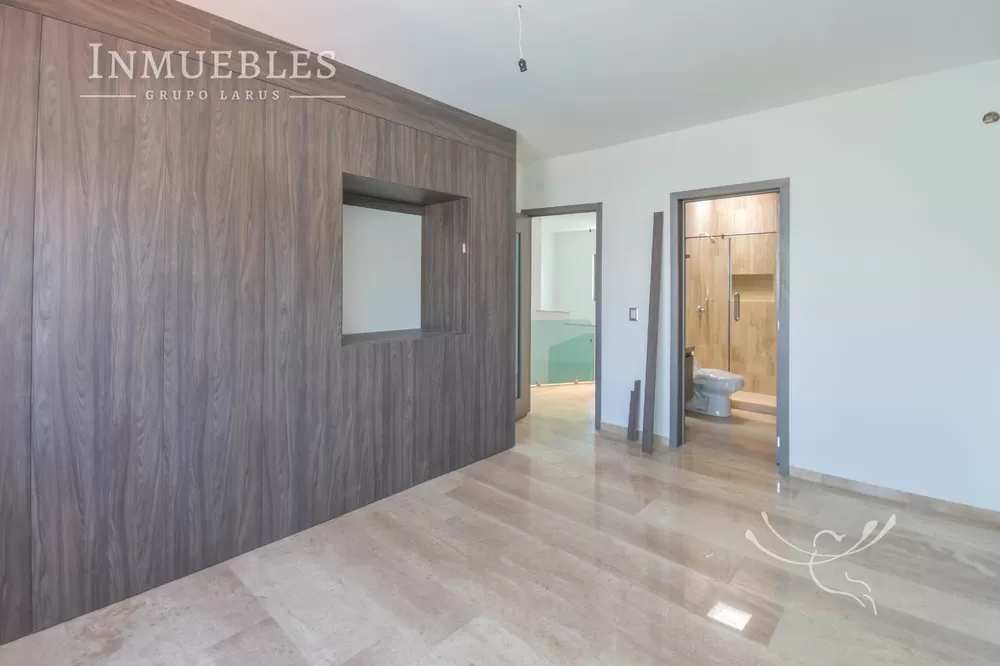 La planta baja cuenta con una amplia sala, cocina integral equipada con barra de granito, una recámara con baño completo, medio baño para visitas, área de lavado, cuarto de servicio y terraza con vista al jardín. El diseño incluye pisos de mármol y acabados de excelente calidad.