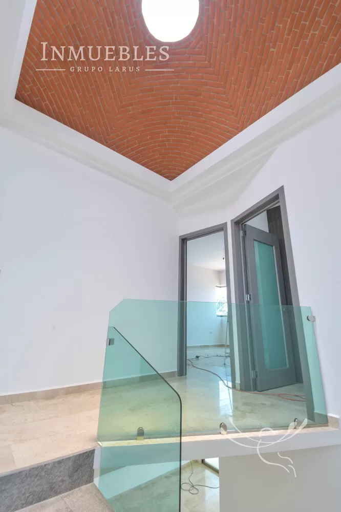En planta alta encontrarás una elegante escalera con bóveda catalana, sala de TV y 3 recámaras con clósets. La principal cuenta con baño completo y bóveda catalana, mientras que las otras dos recámaras tienen acceso a 2 baños completos adicionales.