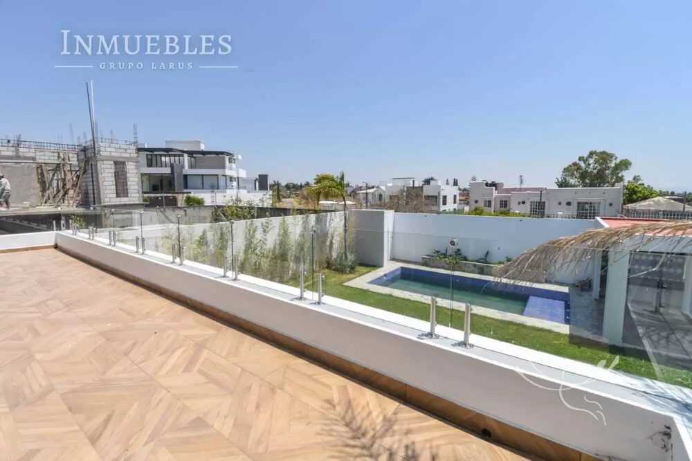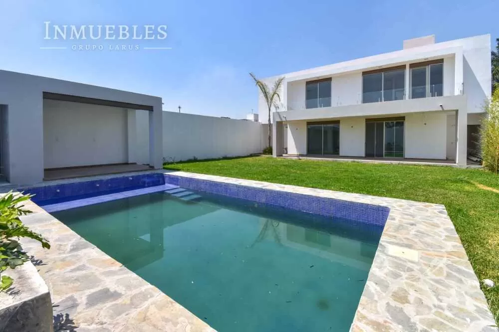 En la planta baja encontrarás una amplia sala y comedor, cocina equipada con isla y barra de granito, medio baño, patio de servicio, jardín, alberca privada y una palapa con asador y baño completo, perfecta para reuniones. Además, cuenta con estacionamiento para 4 autos y una cisterna de 10,000 litros.