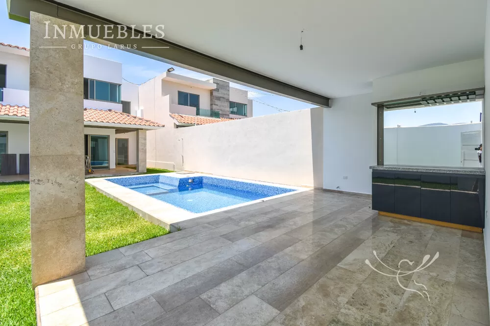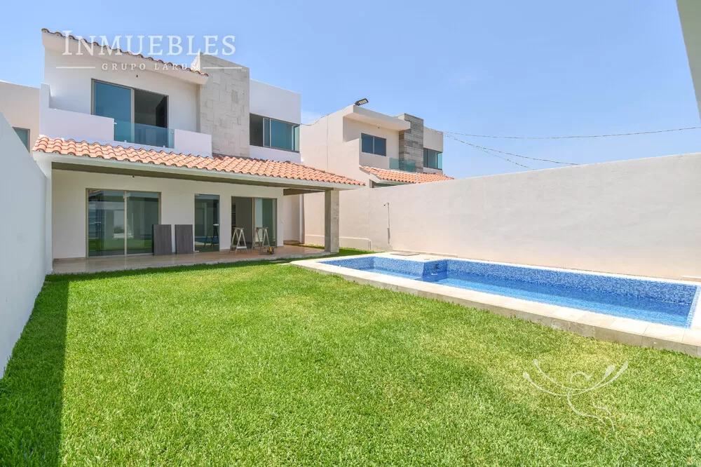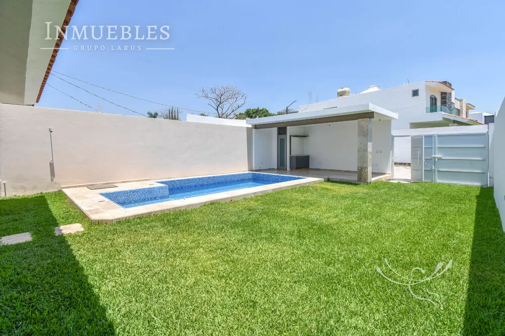 El exterior es ideal para reuniones y momentos de relajación: amplio jardín, alberca privada, palapa con barra de granito y medio baño, cisterna de 10 mil litros y estacionamiento para 2 o 3 autos. Todo con acceso por portón privado 🌿🏊🏼♀️.