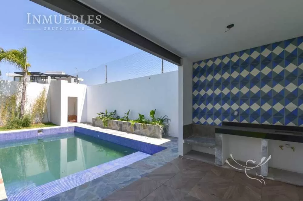 En la planta baja encontrarás una amplia sala y comedor, cocina equipada con isla y barra de granito, medio baño, patio de servicio, jardín, alberca privada y una palapa con asador y baño completo, perfecta para reuniones. Además, cuenta con estacionamiento para 4 autos y una cisterna de 10,000 litros.